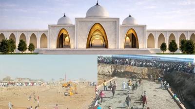 JCB की गूंज… सीमेंट-बालू ढोते श्रमिक, 11 बीघा जमीन पर बन रही बाबारी मस्जिद