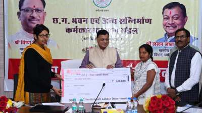 रायपुर : श्रम मंत्री लखन लाल देवांगन आज नवा रायपुर स्थित छत्तीसगढ़ भवन एवं अन्य सनिर्माण कर्मकार मंडल कार्यालय में 41 हजार से अधिक श्रमिकों के बैंक खाते में 23.22...