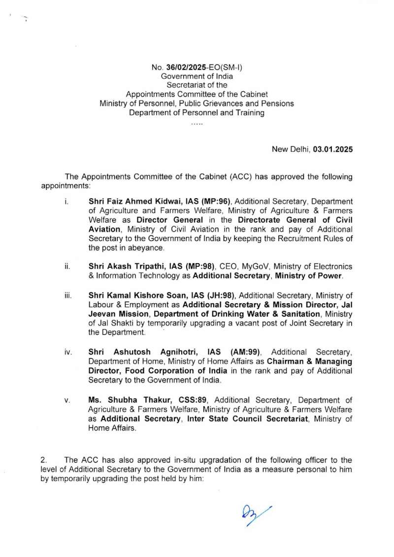 भोपाल: मध्यप्रदेश कैडर के आईएएस अधिकारी आकाश त्रिपाठी ऊर्जा मंत्रालय भारत सरकार में एडिशनल सेक्रेटरी बनाए गए।