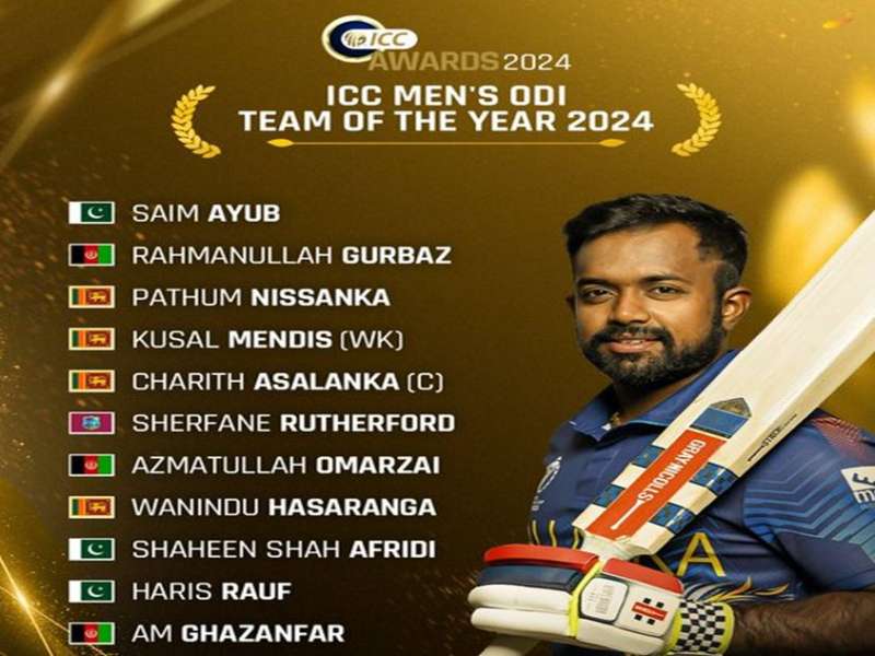 मेन्स वनडे टीम ऑफ द ईयर 2024 में अफगानिस्तान के 3, पाकिस्तान के 3, श्रीलंका के 4 और वेस्टइंडीज के एक खिलाड़ी को मौका मिला है। श्रीलंका के चरिथ असलंका, कुशल मेंडिस, पाथुम निसंका और वानिंदु हसंरगा को शामिल किया गया है। वहीं पाकिस्तान की तरफ से सैम अयूब, शाहीन अफरीदी और हारिस राउफ को चांस मिला है। अफगानिस्तान की तरफ से रहमानुल्लाह गुरबाज, अजमतुल्लाह उमरजई और गजनफर को मौका मिला है। वहीं वेस्टइंडीज के शेरफेन रदरफोर्ड को शामिल किया गया है।