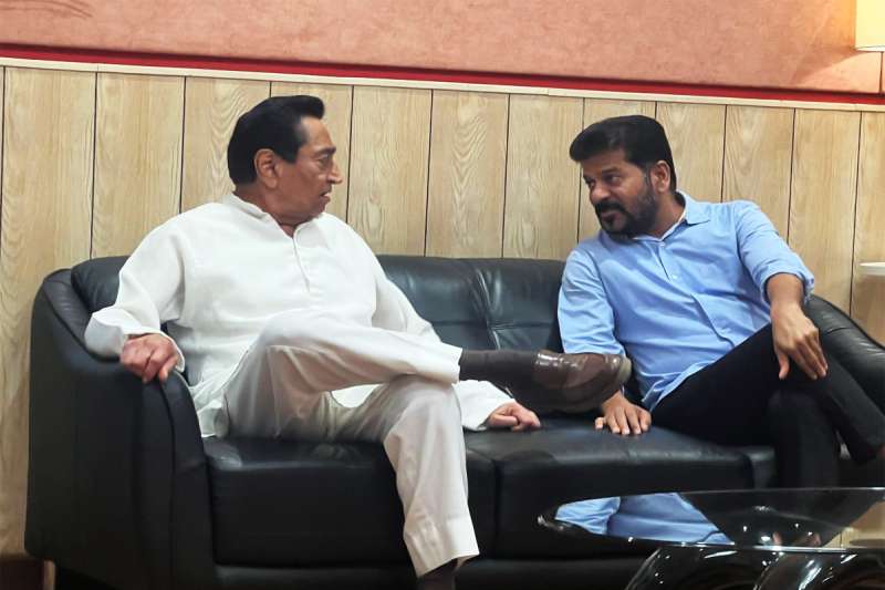 समारोह में मौजूद रेवंत रेड्डी और कमलानाथ