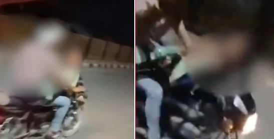 फिरोजाबाद नेशनल हाईवे पर चलती बाइक पर कपल रोमांस का Video हुआ Viral