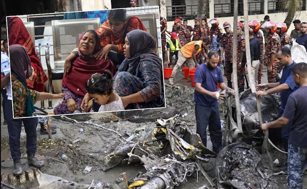 ढाका। ढाका के माइलस्टोन स्कूल और कॉलेज में बांग्लादेश वायुसेना का ट्रेनिंग जेट क्रैश केस में अब मरने वालों की संख्या 20 पहुंच गई है। मरने वालों में 16 बच्चे, दो शिक्षक और पायलट फ्लाइट लेफ्टिनेंट मोहम्मद तौकीर इस्लाम शामिल थे। गंभीर रूप से जलने वाले बहुत से बच्चे अस्पतालों में जिंदगी और मौत की जंग लड़ रहे हैं। रिपोर्ट के मुताबिक ढाका के अस्पतालों में परिजनों की चीख-पुकार और मासूमों की तड़प ने हर किसी का दिल दहला दिया।