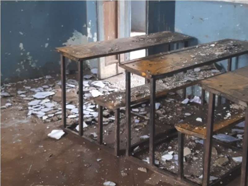 कक्षा में पढ़ाई करते बच्चों पर टूटा कहर, गिरा जर्जर छत का प्लास्टर