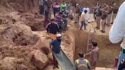 दीवार गिरने से मची अफरा-तफरी, 60 फीट नीचे बेसमेंट में फंसे मजदूर