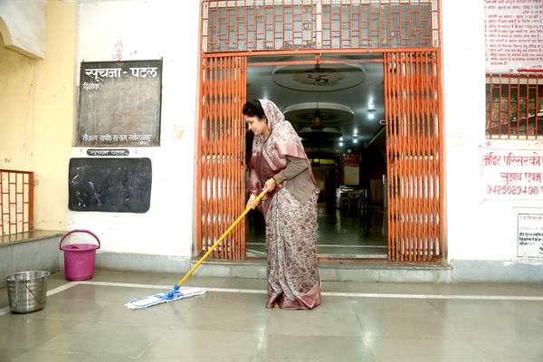 भोपाल : पिछड़ा वर्ग एवं अल्पसंख्यक कल्याण राज्य मंत्री (स्वतंत्र प्रभार) कृष्णा गौर ने रविवार को शिव शक्ति मंदिर, पंचवटी मार्केट, गोविंदपुरा में झाडू-पोछा लगाया। प्रधानमंत्री नरेन्द्र मोदी के आह्वान पर मंदिर परिसर में स्वच्छता अभियान के क्रम में गौर मंदिर में साफ-सफाई करने पहुँचीं।