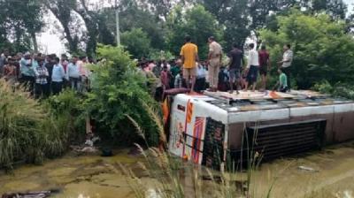 कानपुर में भीषण सड़क हादसा, स्कूल बस ने बाइक को मारी टक्कर और पलटी, पिता-पुत्र की मौत से मातम