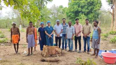 पशु चिकित्सकों ने सुदूर ग्राम पदनार के जंगल में सिजेरियन ऑपरेशन कर बचाई गाय की जान