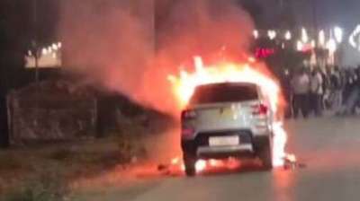हाईवे पर दौड़ी ‘द बर्निंग कार’, मचा हडक़ंप, चालक की समझदारी से टली बड़ी दुर्घटना